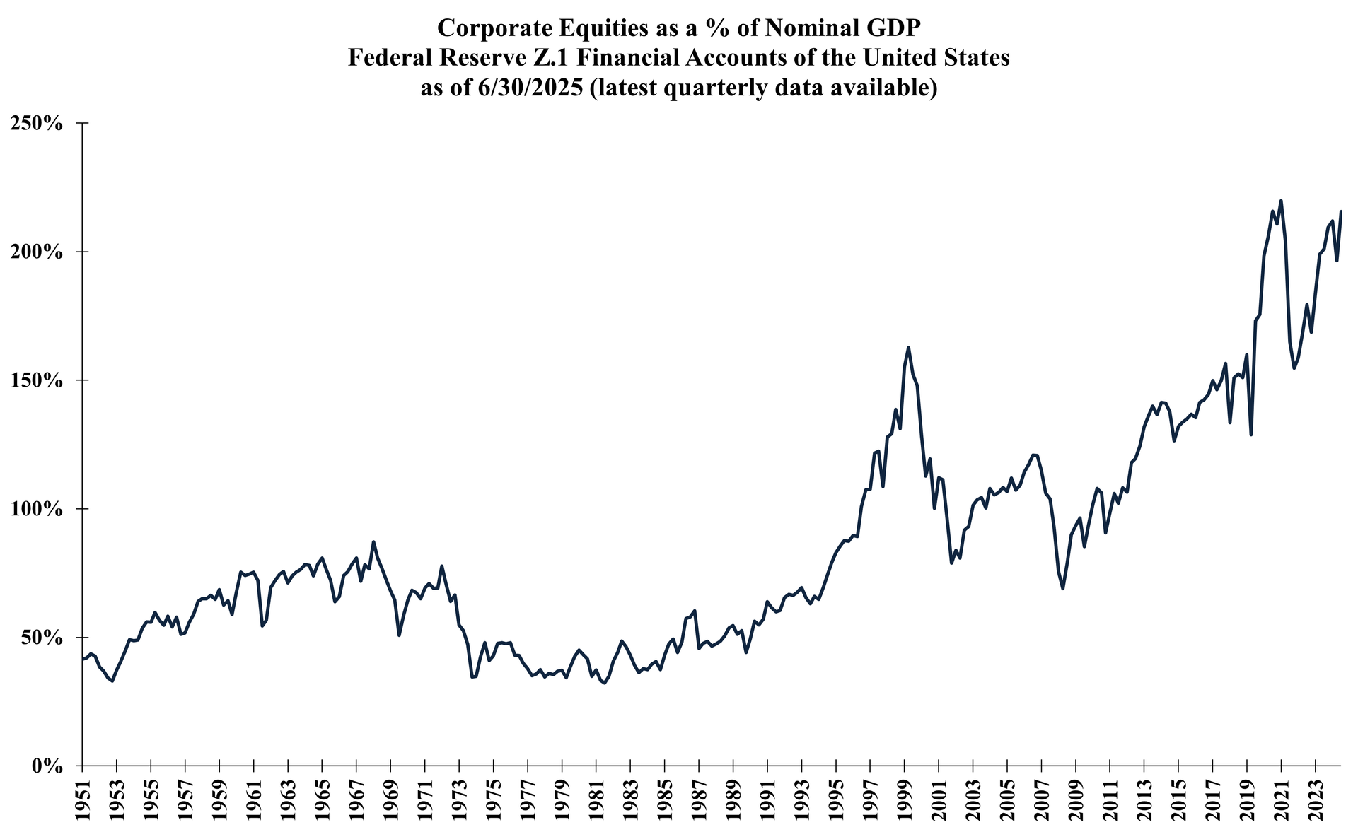We are also sympathetic to the view that the long-term financialization of the U.S. economy can certainly effect policy making, both monetary and fiscal. The chart below uses the Federal Reserve’s most recently published quarterly data to estimate the U.S. stock market’s total value relative to the size of the U.S. economy. While this relationship fluctuates meaningfully over time due to changes in economic growth and stock market performance, the total value of U.S. equities has clearly increased over time relative to the size of the economy: